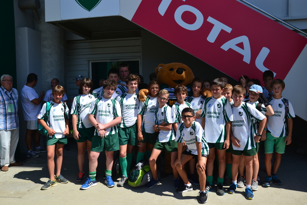 Invités par la Section Paloise, 30 minimes accompagnés de leur éducateurs, ont assisté au match Top 14 Pau-Toulon. Aprés la haie d'honneur, 12 d'entre eux désignés ramasseurs de balle, ont suivi la rencontre au plus prés du terrain.A l'issu du match, nos jeunes ont approché les stars des 2 équipes.....Moment inoubliable !