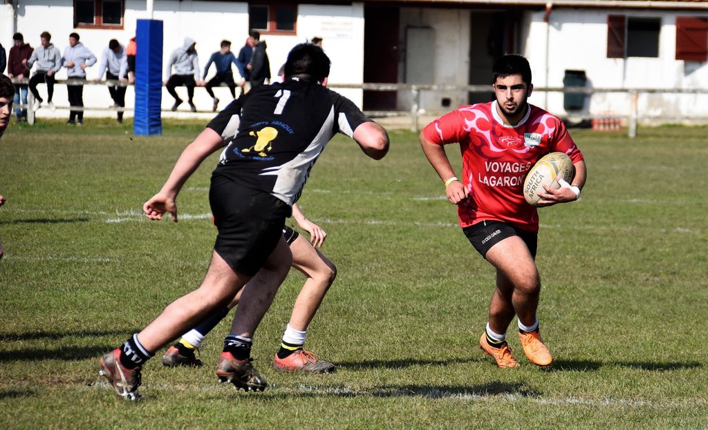 Les cadets , malgrè la défaite face à Boucau Tarnos, ont affiché une solidarité exemplaire et ont joué le jeu tout au long de la partie . Un bel essai de Vincent Burkat en première mi-temps témoigne de cet état d'esprit positif BTS 59 XV des Gaves 7
