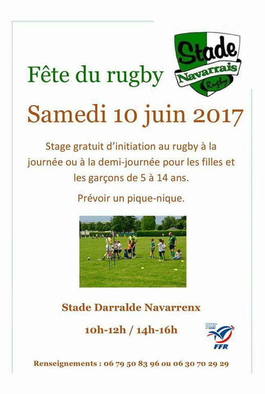 stage gratuit d'initiation au rygby à la journée ou à la demi-journée pour les filles et garçons de 5 à 14 ans.