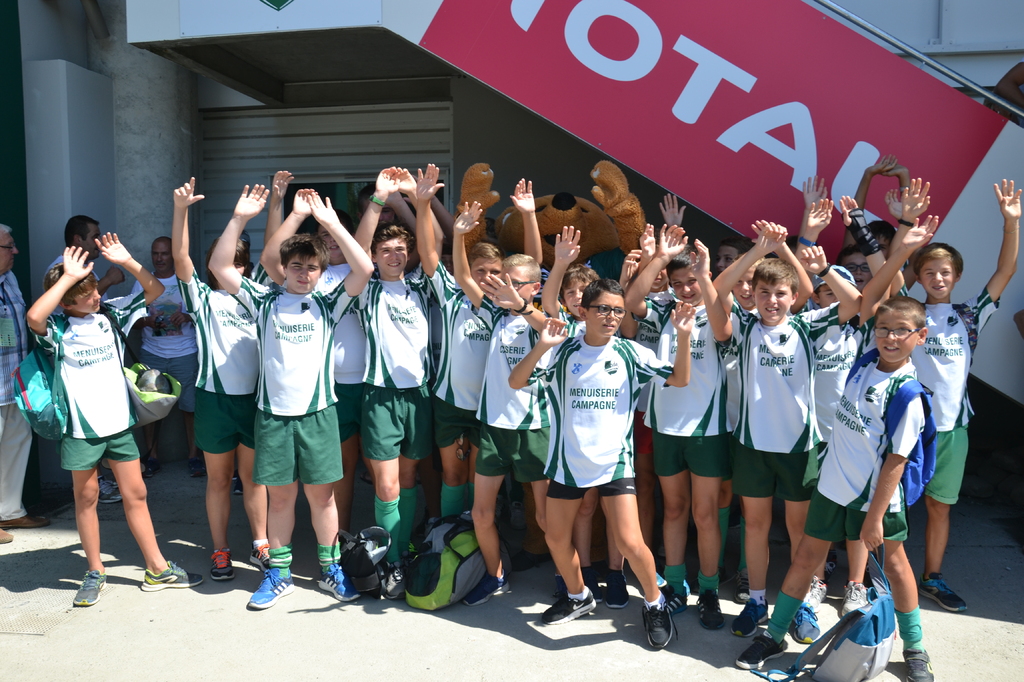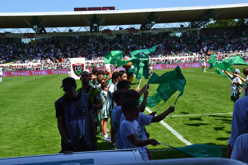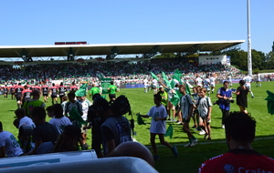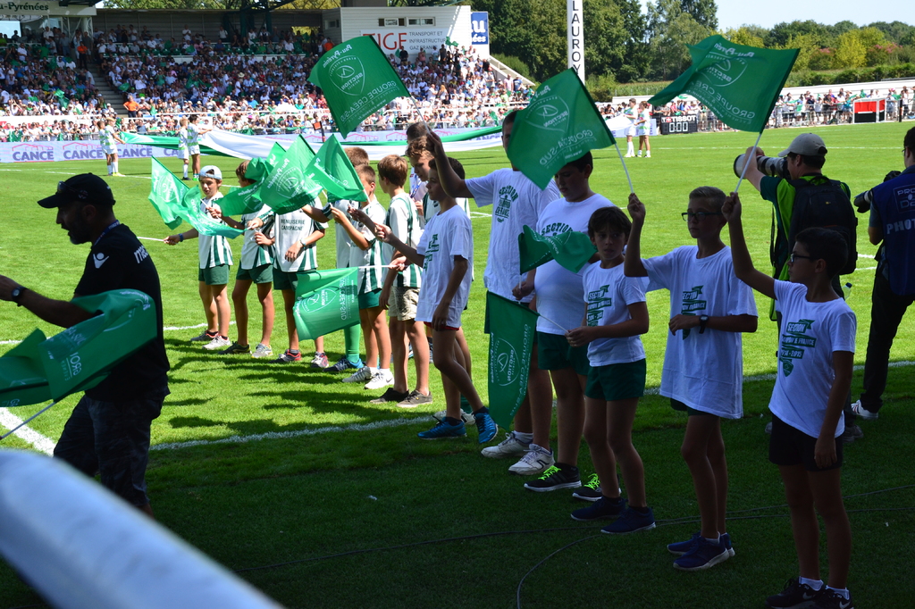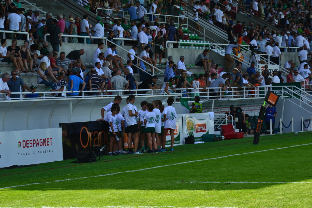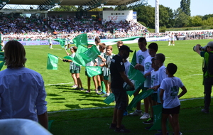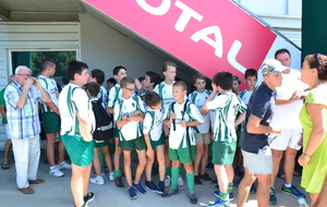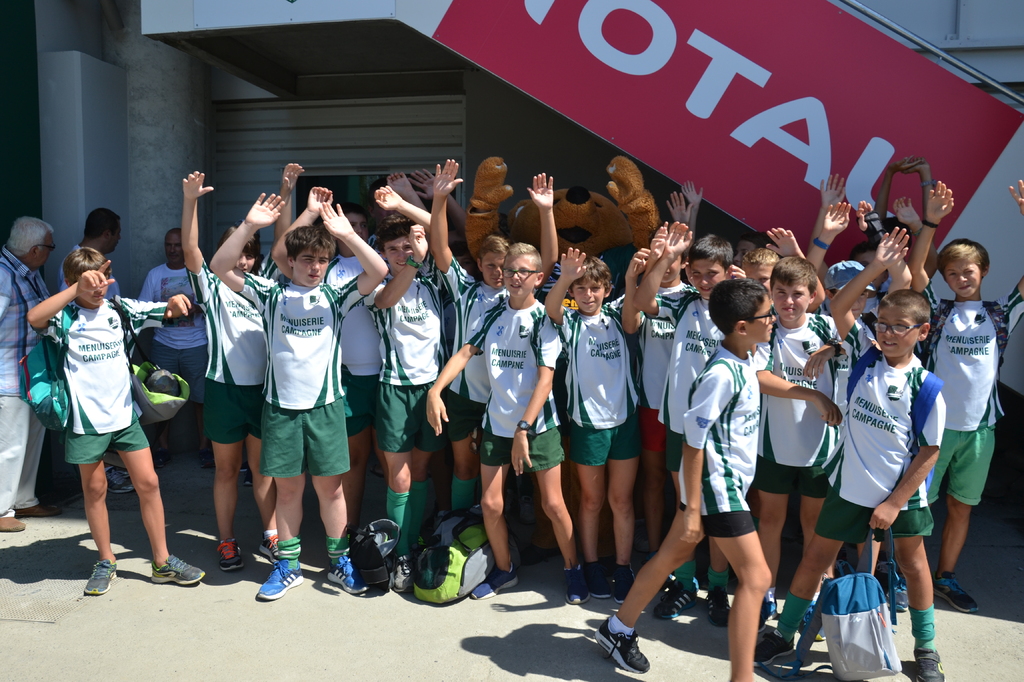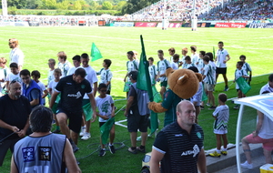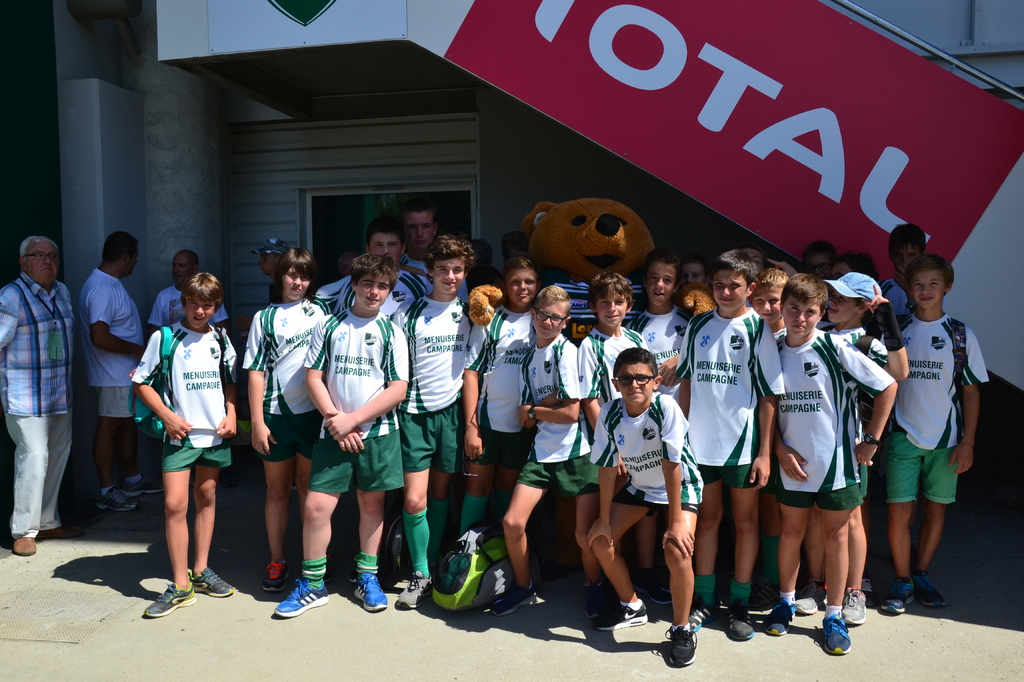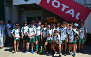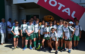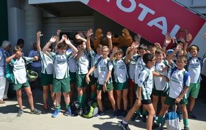 Invités par la Section Paloise, 30 minimes accompagnés de leur éducateurs, ont assisté au match Top 14 Pau-Toulon. Aprés la haie d'honneur, 12 d'entre eux désignés ramasseurs de balle, ont suivi la rencontre au plus prés du terrain.A l'issu du match, nos jeunes ont approché les stars des 2 équipes.....Moment inoubliable !