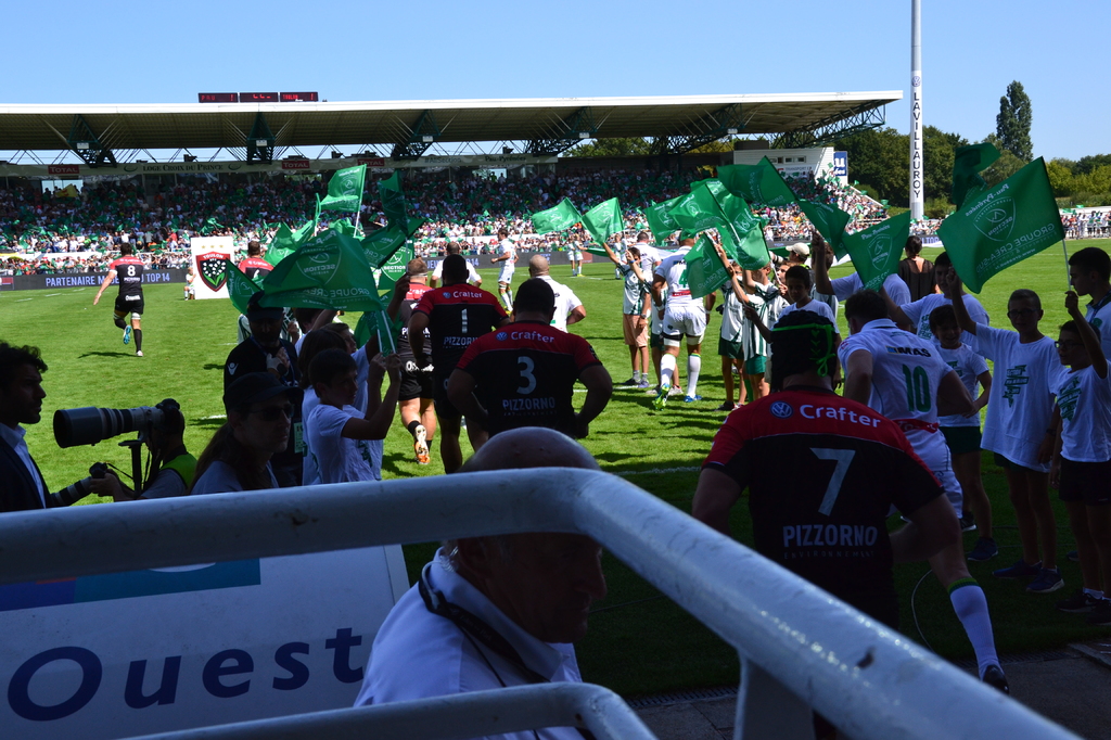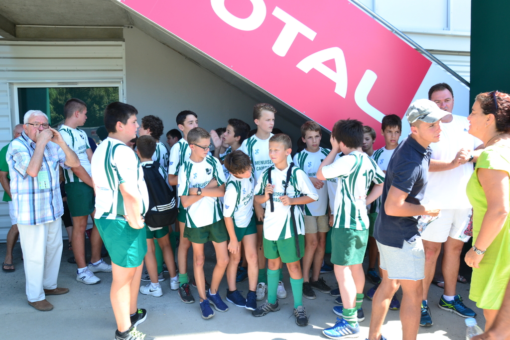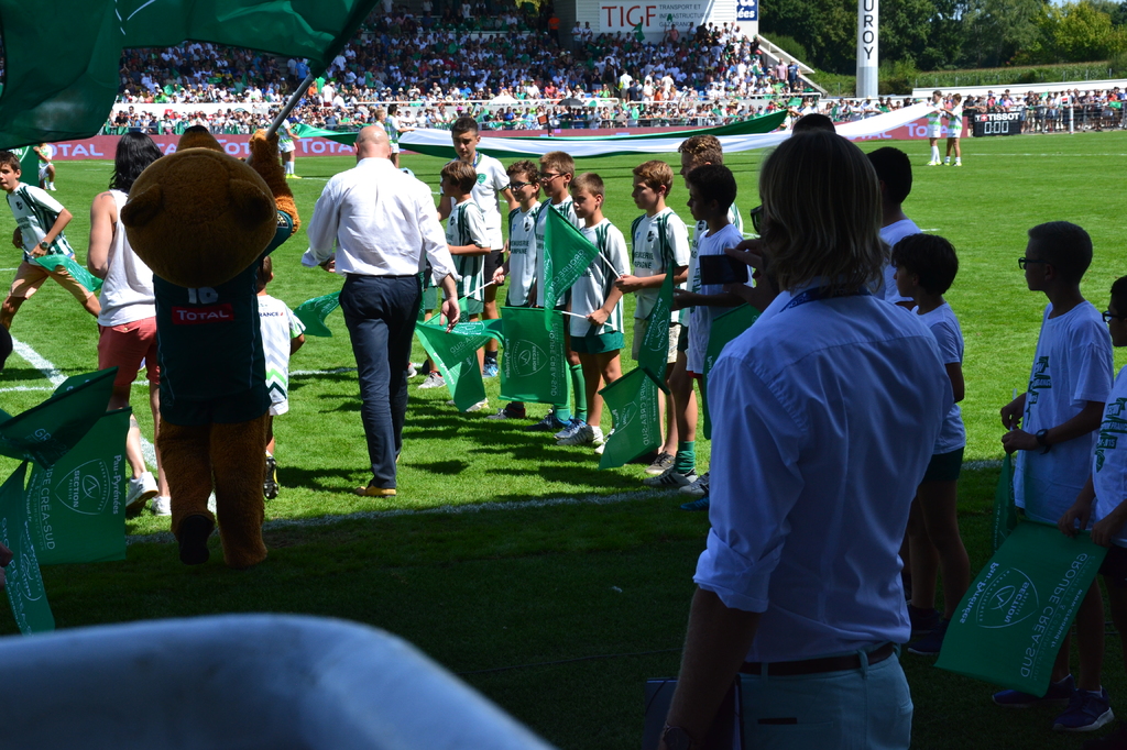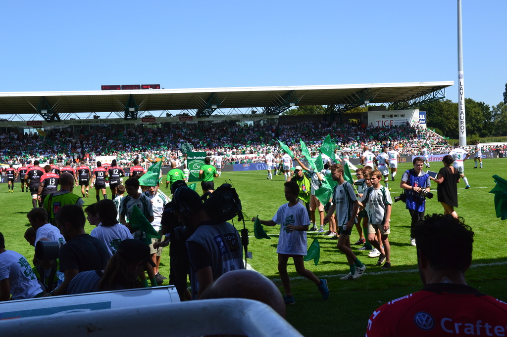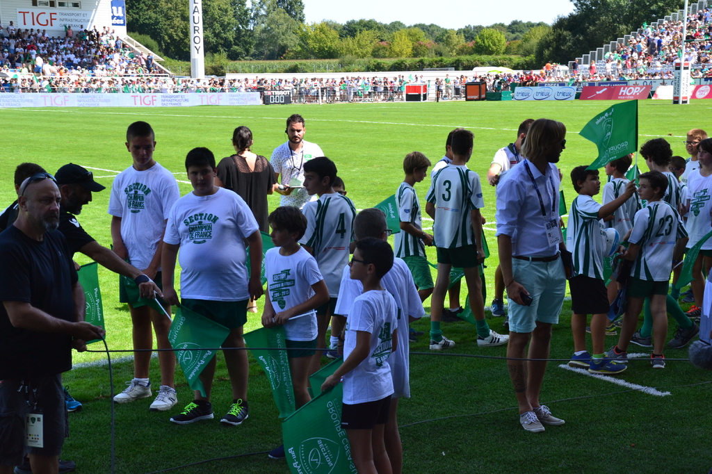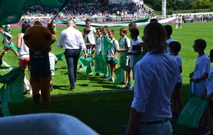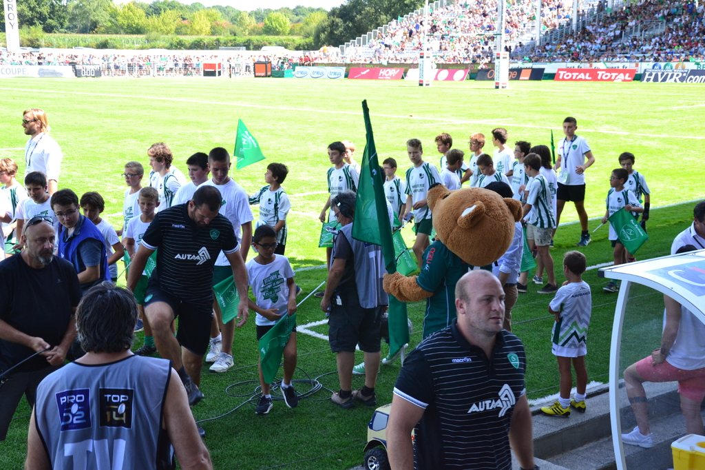 Invités par la Section Paloise, 30 minimes accompagnés de leur éducateurs, ont assisté au match Top 14 Pau-Toulon. Aprés la haie d'honneur, 12 d'entre eux désignés ramasseurs de balle, ont suivi la rencontre au plus prés du terrain.A l'issu du match, nos jeunes ont approché les stars des 2 équipes.....Moment inoubliable !