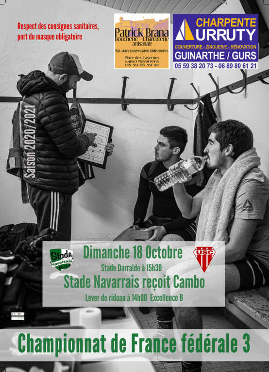 Dimanche 18 octobre, venez encourager nos équipes Excellence B à 14h et Fédérale 3 à 15h30 contre Cambo.